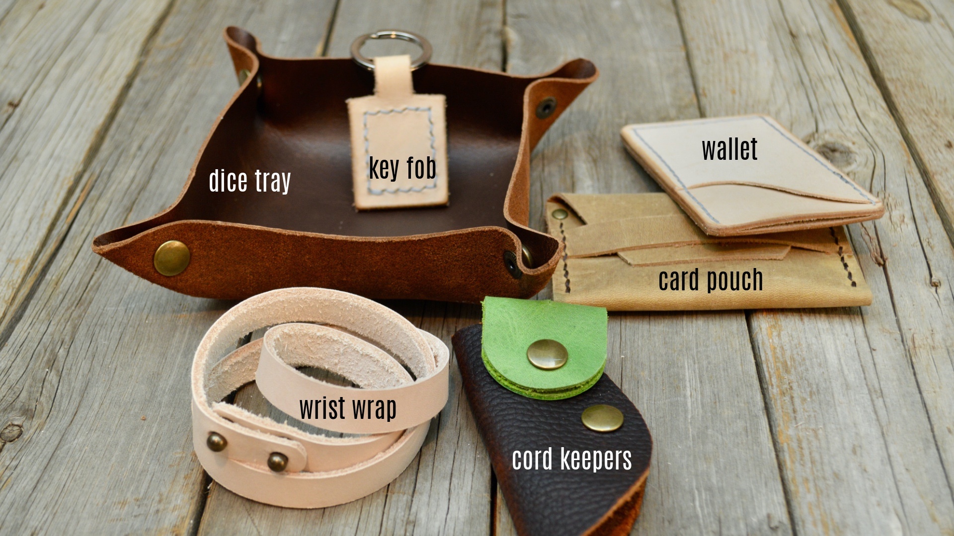 Students will make cord keepers, a wrist wrap, a dice tray, a key fob, a card pouch, and a wallet.